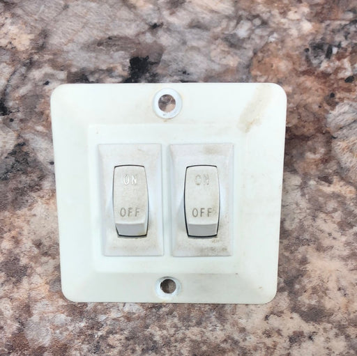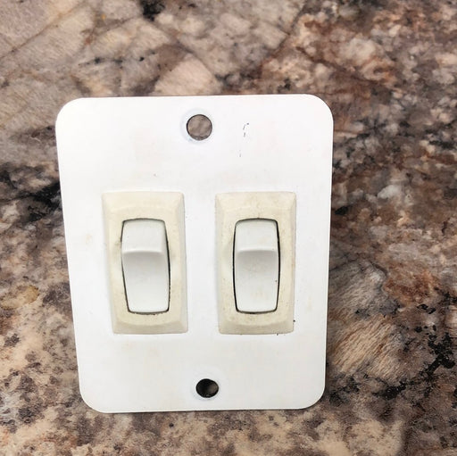 Young Farts RV PartsUsed 12v RV Double Light Switch wall plate / faceplate cover **NOTES: this is a used part, being white some are more faded/ yellowed than others....