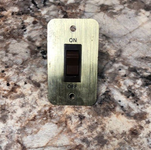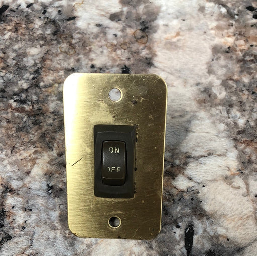 Young Farts RV PartsUsed 12v RV Single Light Switch Dimensions: 2 3/4" x 1 3/8" Note: Great used condition. Nice looking wooden backing! Unit has been tested, and is...