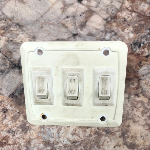 Young Farts RV PartsUsed 12v RV Triple Light Switch USED PART DISCLAIMER: ** Please Read Full Product Description Before Purchasing** All used parts are from dis...