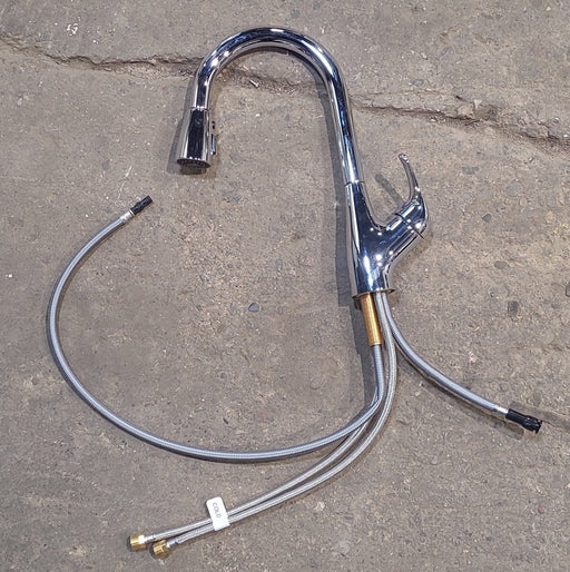 Young Farts RV PartsUsed Pull Down Kitchen Faucet, Chrome, Chrome Lever Handle Make &/ Model Number: Unknown Notes: Good used condition. Unit has been tested, and ...