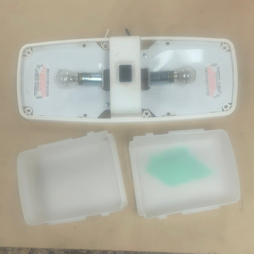 BargmanRV interior light Fixture | 30-93-XXX Bargman | *DOUBLE* White Lens 11 1/2 x 4 1/2 " USED PART DISCLAIMER: ** Please Read Full Product Description...